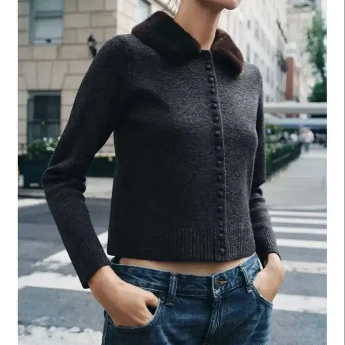 완판템 ZARA 페이크 퍼 라펠 니트 자켓 퍼 xl 신상 자라