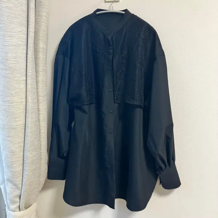 lumier 뤼미에 블랙 코드 레이스 케이프 셔츠