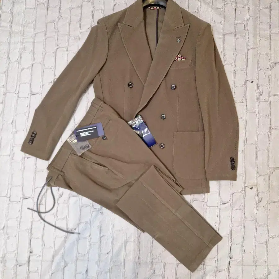 G-STAGE 더블 브레스트 캐주얼 수트 브라운 코듀로이 스트레치