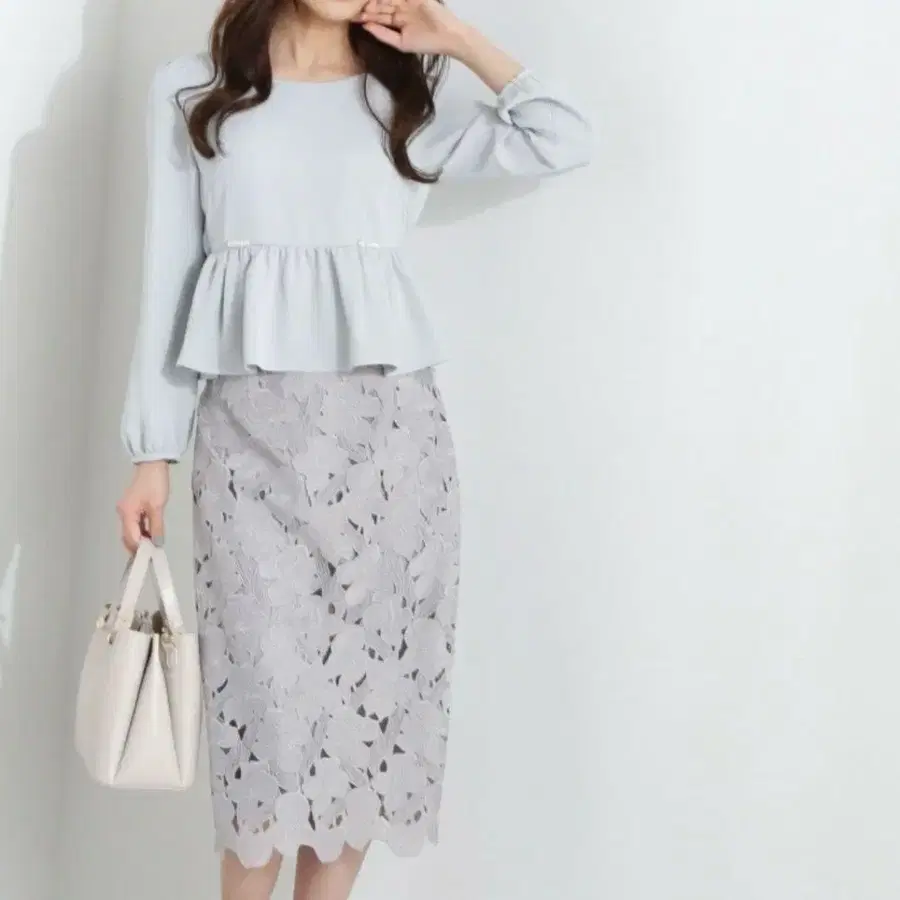 • Rouge vif la cle 루즈비프 파랑 레이스 자수 타이트 스커트