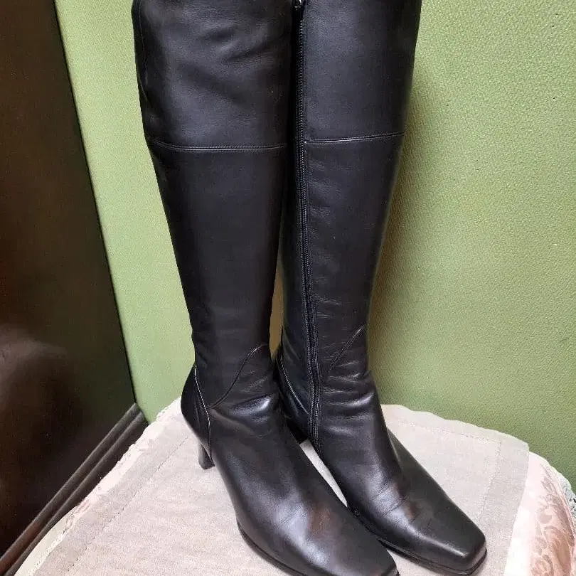 토끼 가게 블랙 가죽 롱 부츠 24cm