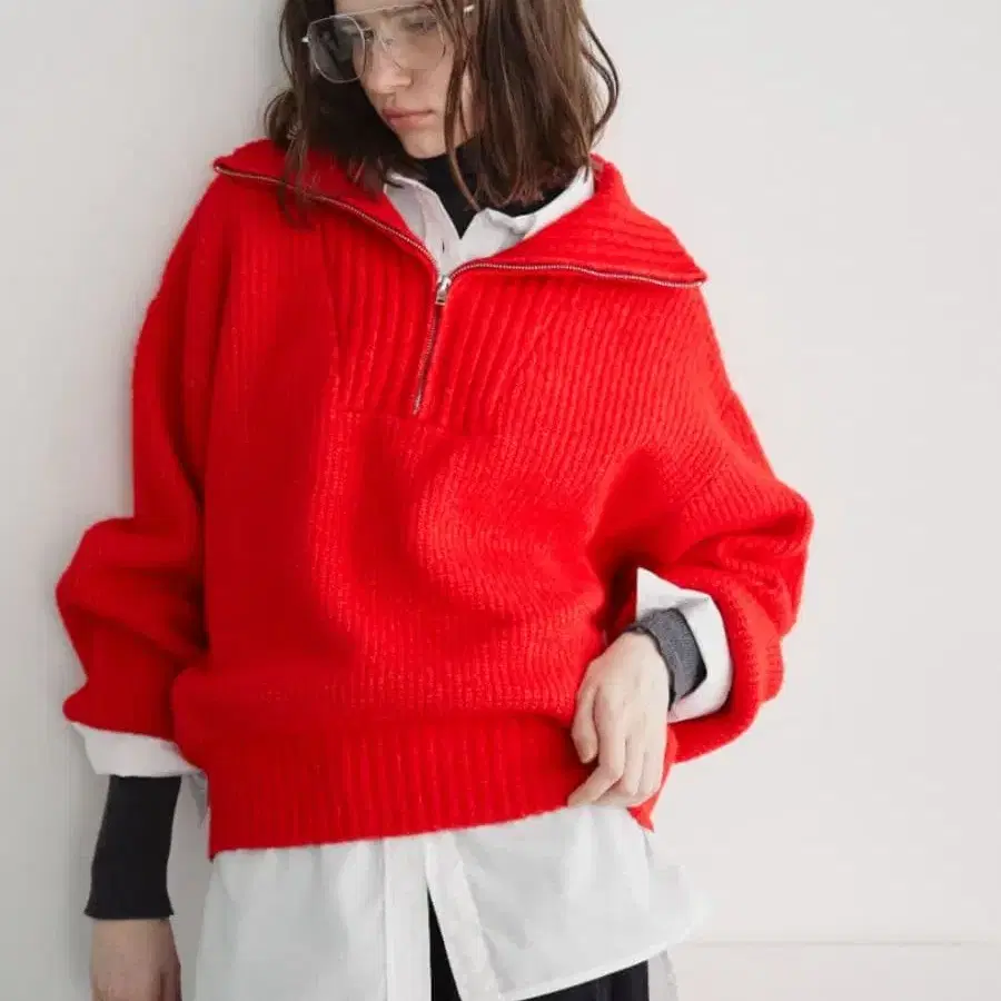 Auntie Rosa Holiday 오버 사이즈 하프 지퍼 니트 레드