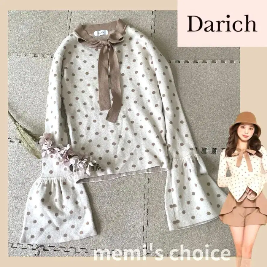 Darich 다리치 도트 무늬 보타이 니트 베이지