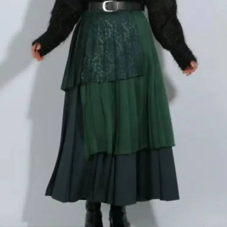 택 포함 미사용품 HARE 아지메 믹스 플리츠 스커트 그린