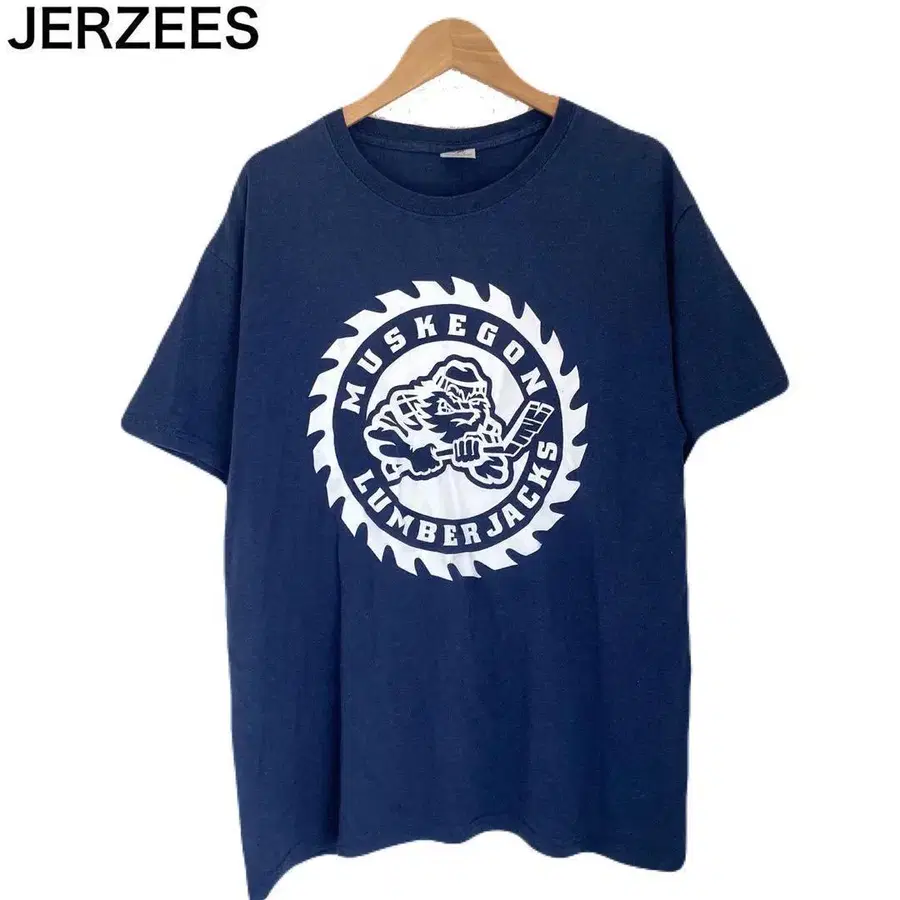 저지즈 마스키곤 프린트 아이스하키 둥근넥 반팔 T셔츠 L