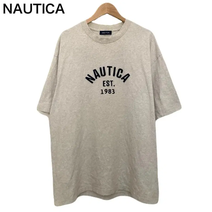노티카 빅 로고 프린트 그레이 반팔 둥근넥 코튼 T셔츠 XL