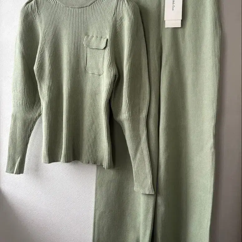 미라 오웬 퍼프 슬리브 니트 팬츠 상하의 2점