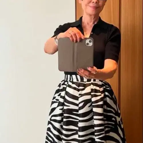 제브라 패턴 플레어 롱 스커트