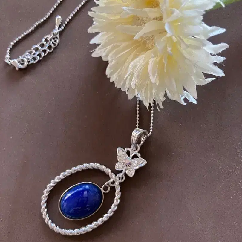 라피스라줄리풍 버터플라이 모티브 실버 목걸이