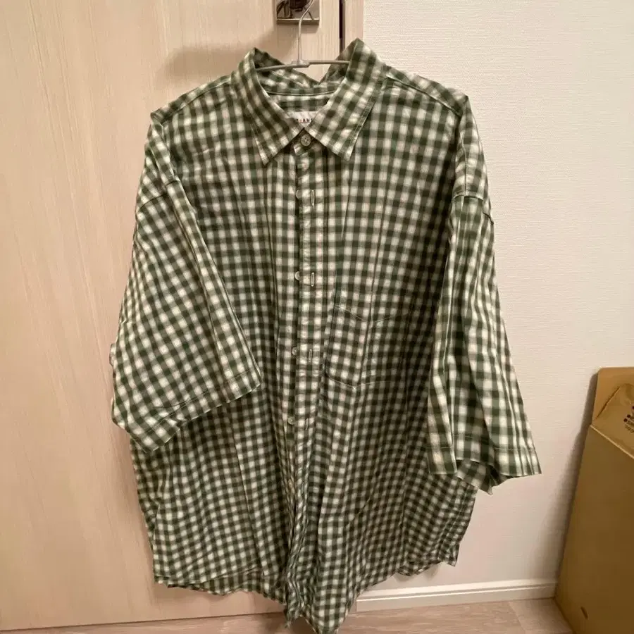 BEAMS 반팔 셔츠 M 그린과 화이트 체크 무늬