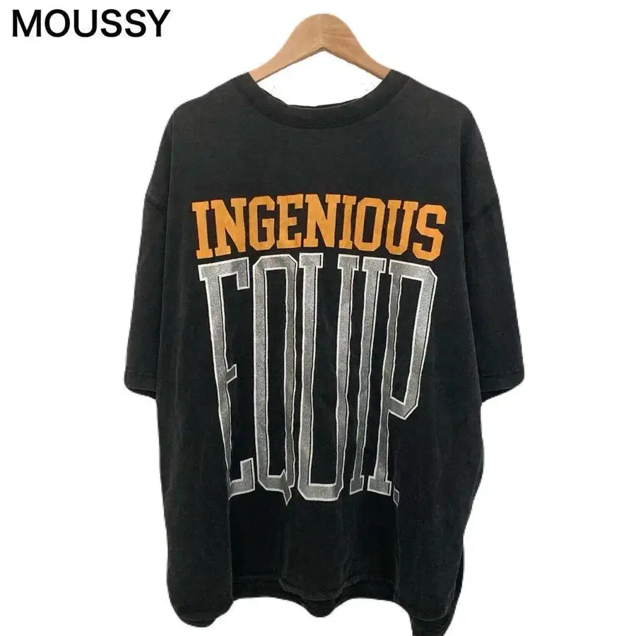 마우지 빅 로고 프린트 반팔 블랙 여성용 둥근넥 프리 T셔츠