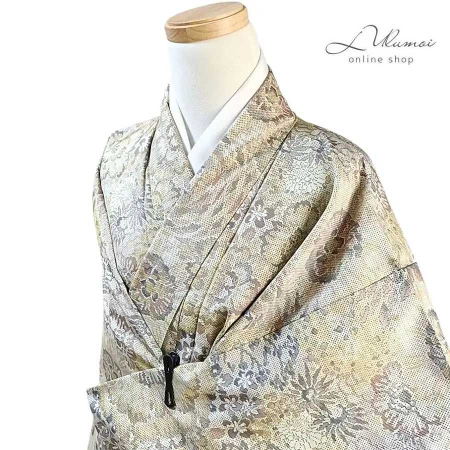 LULU48 기모노 순수 실크 츠케사게 그린 꽃무늬