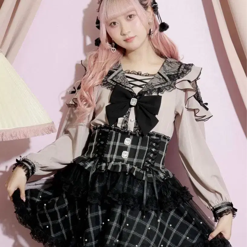NOEMIE 노에미 트렌치 세일러 오픈 숄더 블라우스 핑크