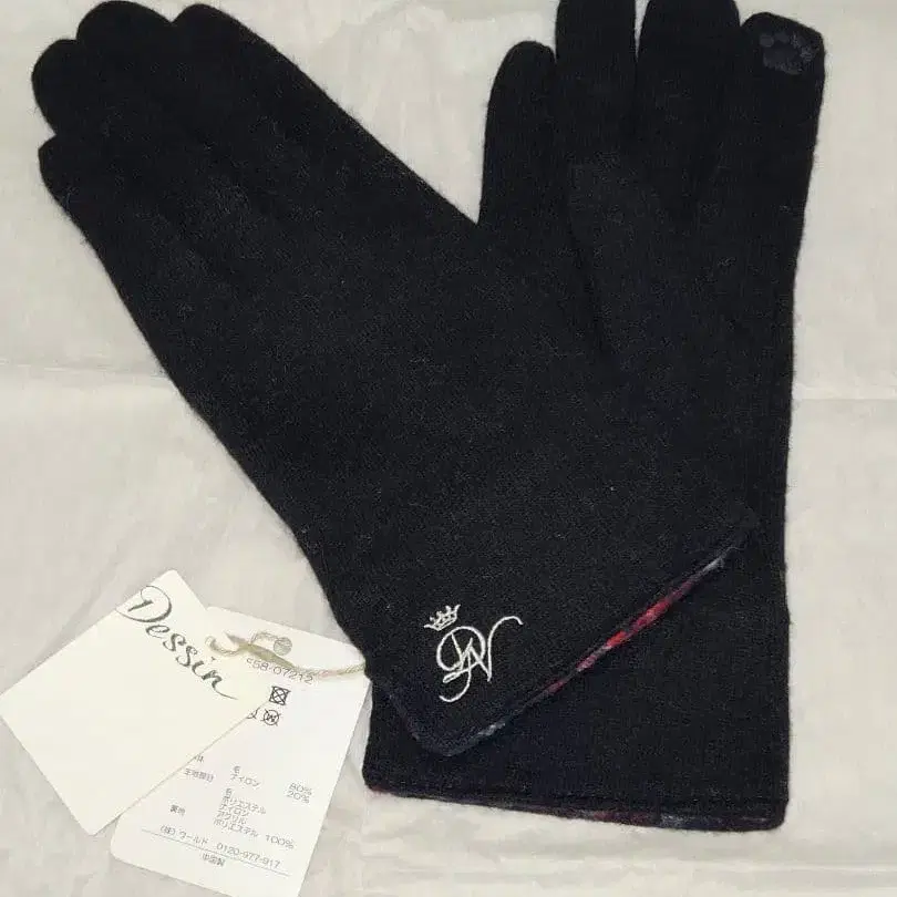 Dessin 데셍 울 혼방 장갑 블랙 자수 로고 포함 미사용