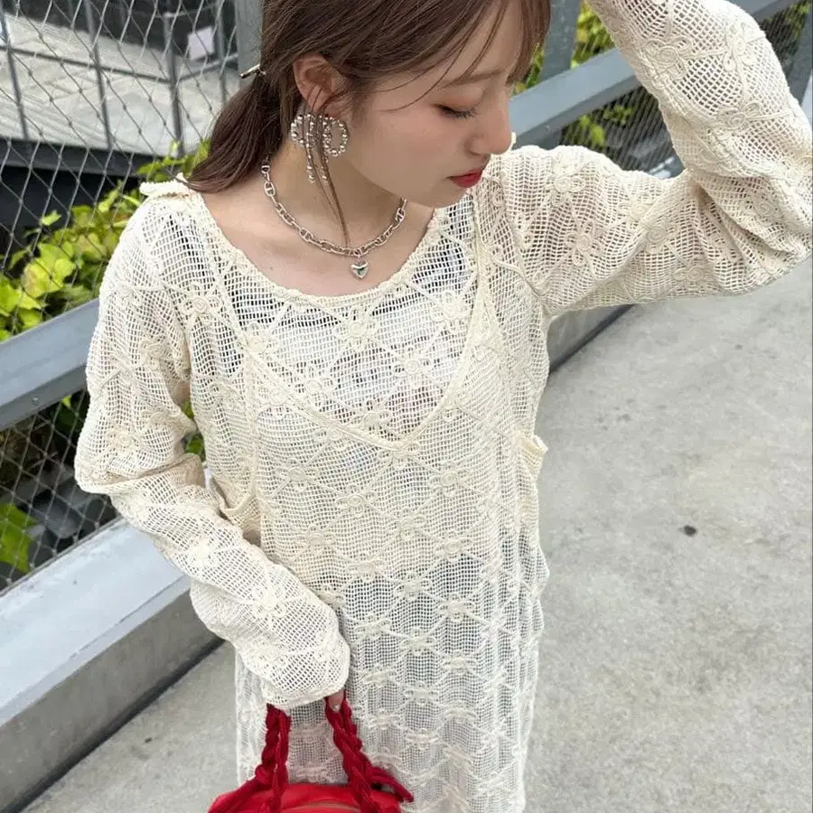 HELLO.SANFRANCISCO 플라워 자수 레이스 상의 포함 원피스