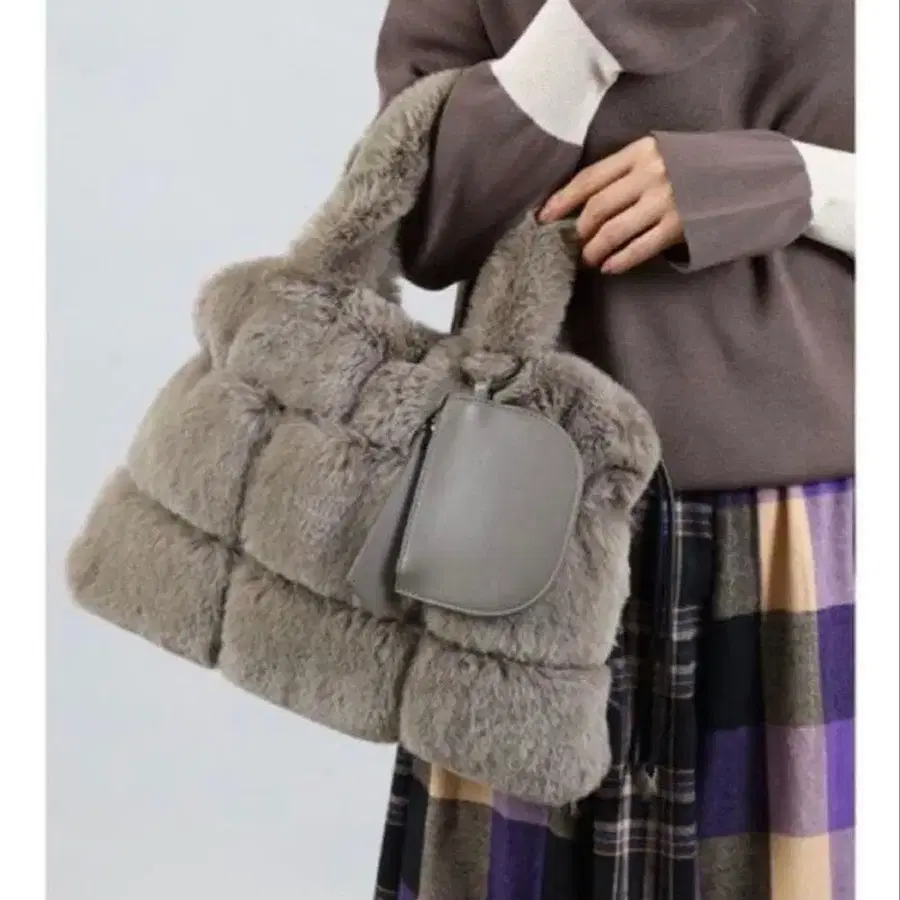 PECHINCHAR 페신샤 스퀘어 퍼 백 그레이쉬 베이지
