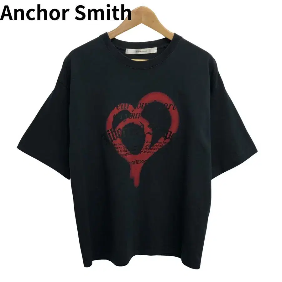 앵커 스미스 하트 아트 프린트 빅 로고 반팔 코튼 T셔츠 L