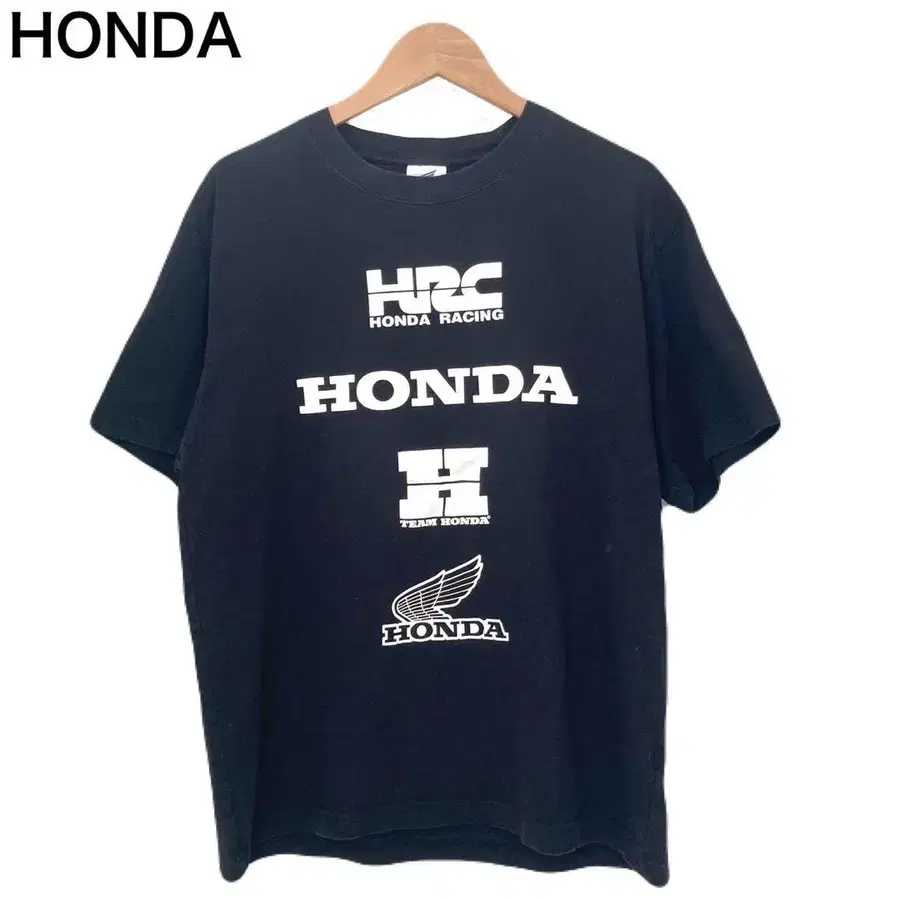 혼다 빅 로고 프린트 레이싱 반팔 블랙 면 둥근넥 티셔츠 M