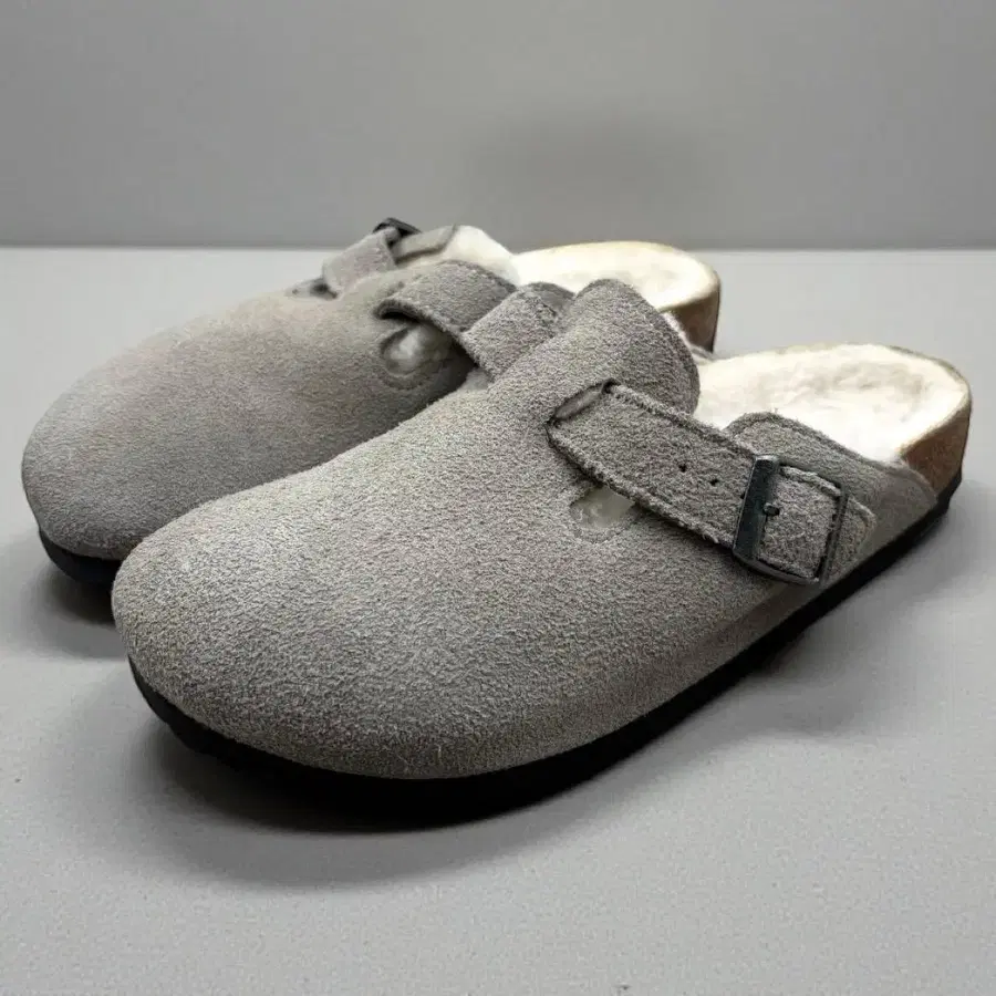 새상품급 버켄스탁 보스턴 시어링 24cm 퍼 그레이 사보