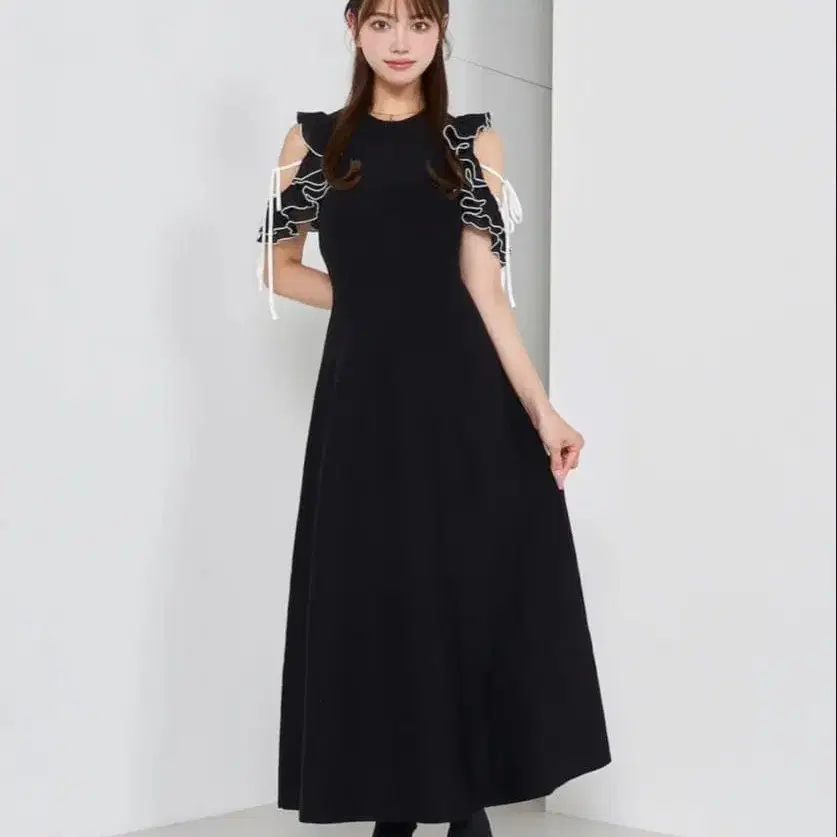 Darich 프릴 리본 니트 롱 원피스 BLACK