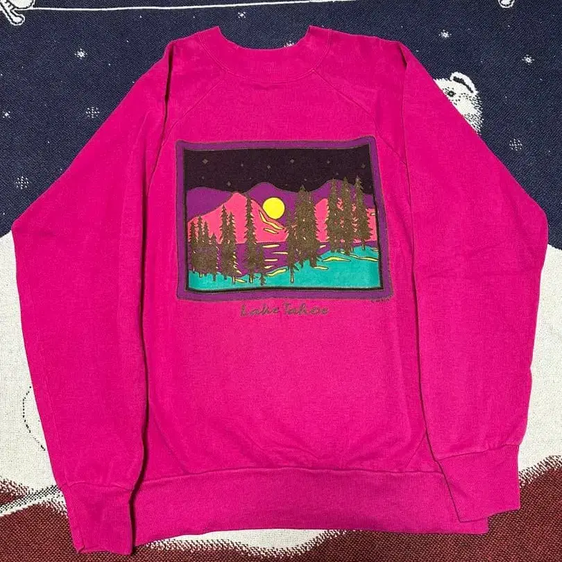 80s 90s usa제 SIGNAL 래글런 맨투맨 핑크 프린트