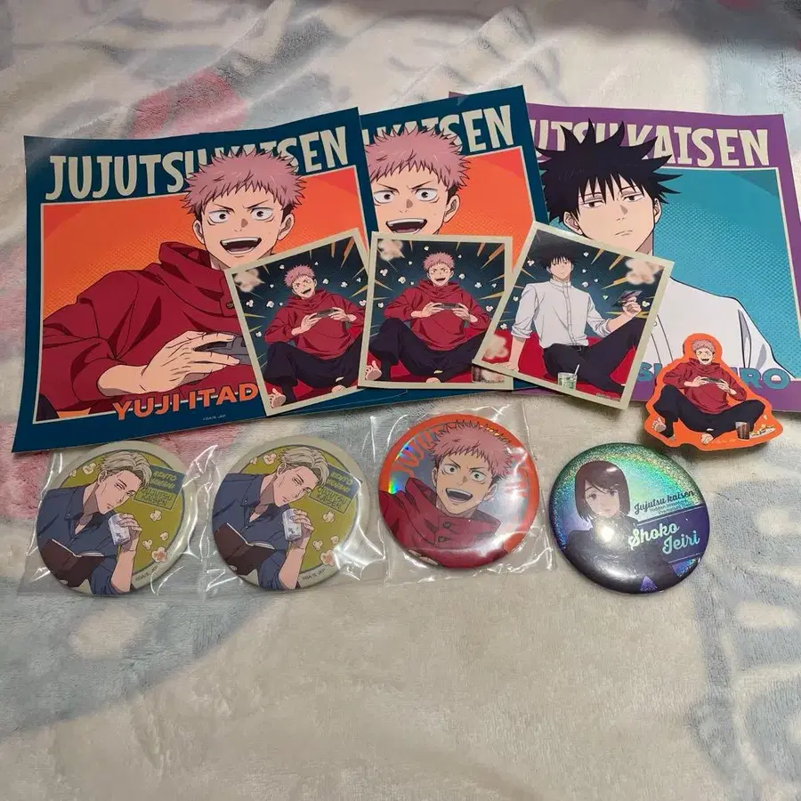 주술회전 세가 럭키 복권 씰 캔 배지 세트