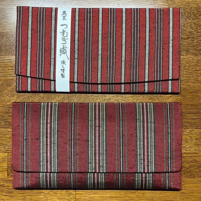 [ 미사용 ] 민예 츠무기 직조 스트라이프 패턴 장지갑