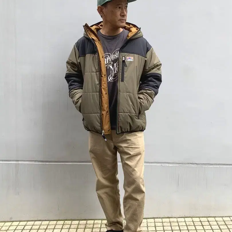 SD 다운 자켓 리버서블 카키 x 브라운 L