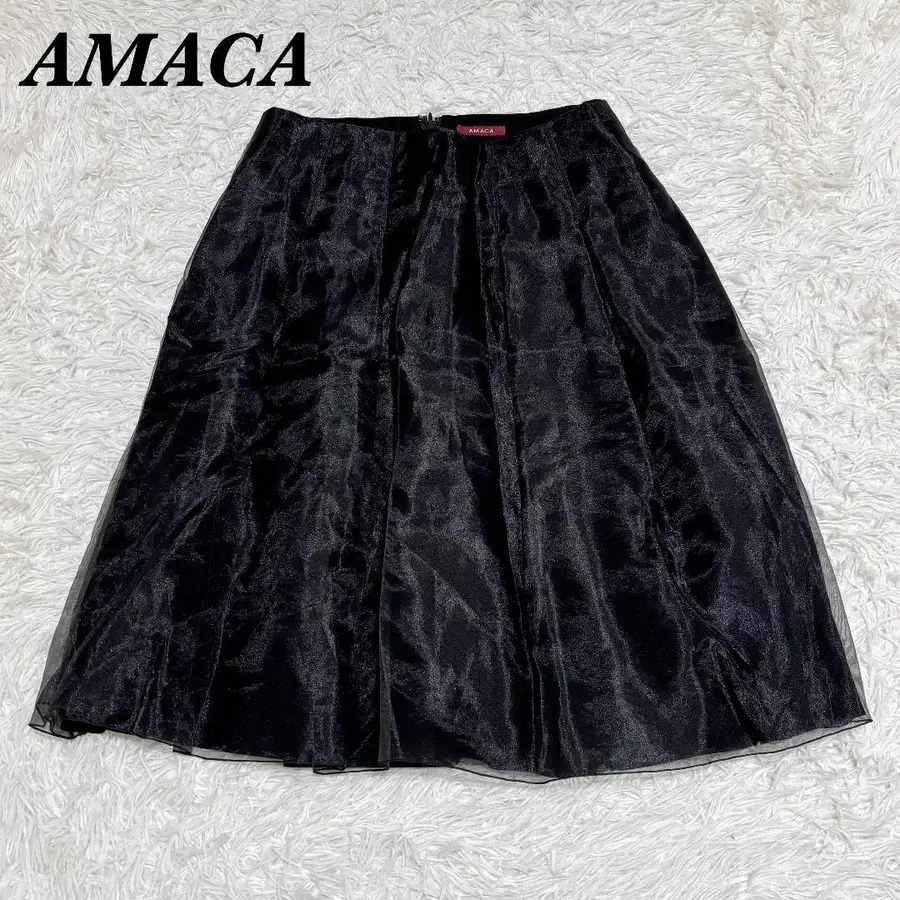 [ 새상품급 ] AMACA 튤 레이어드 미디 스커트 40 블랙