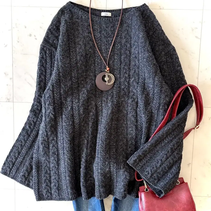 새상품급 이에나 IENA 캐시미어 혼방 아란 테인트 라인 풀오버 그레이