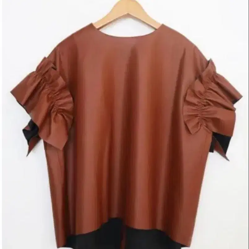 마르고 빈티지 인조 가죽 프릴 풀오버 브라운