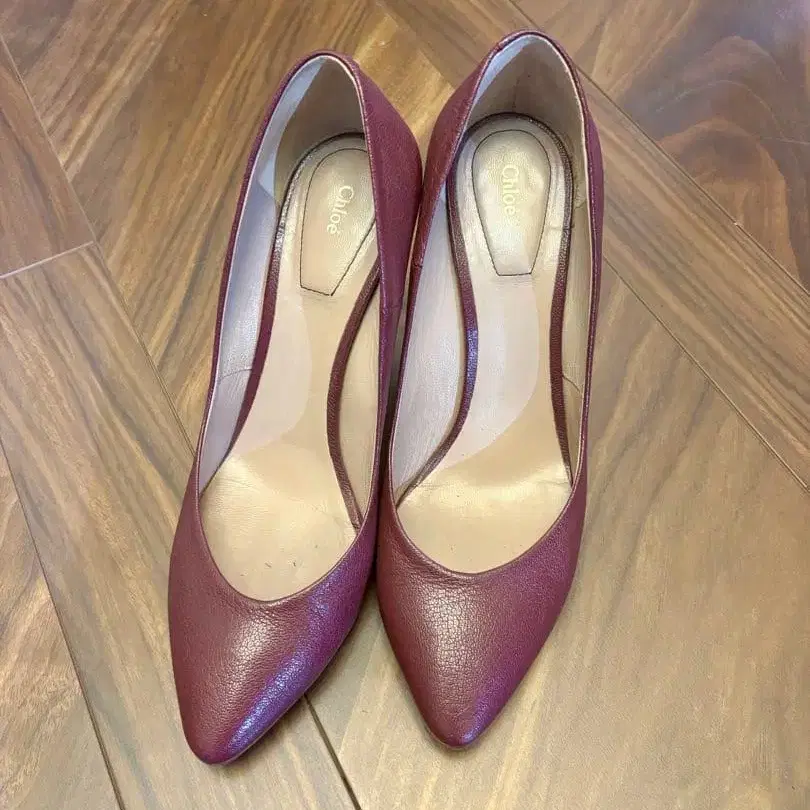 끌로에 버건디 가죽 하이힐 펌프스
