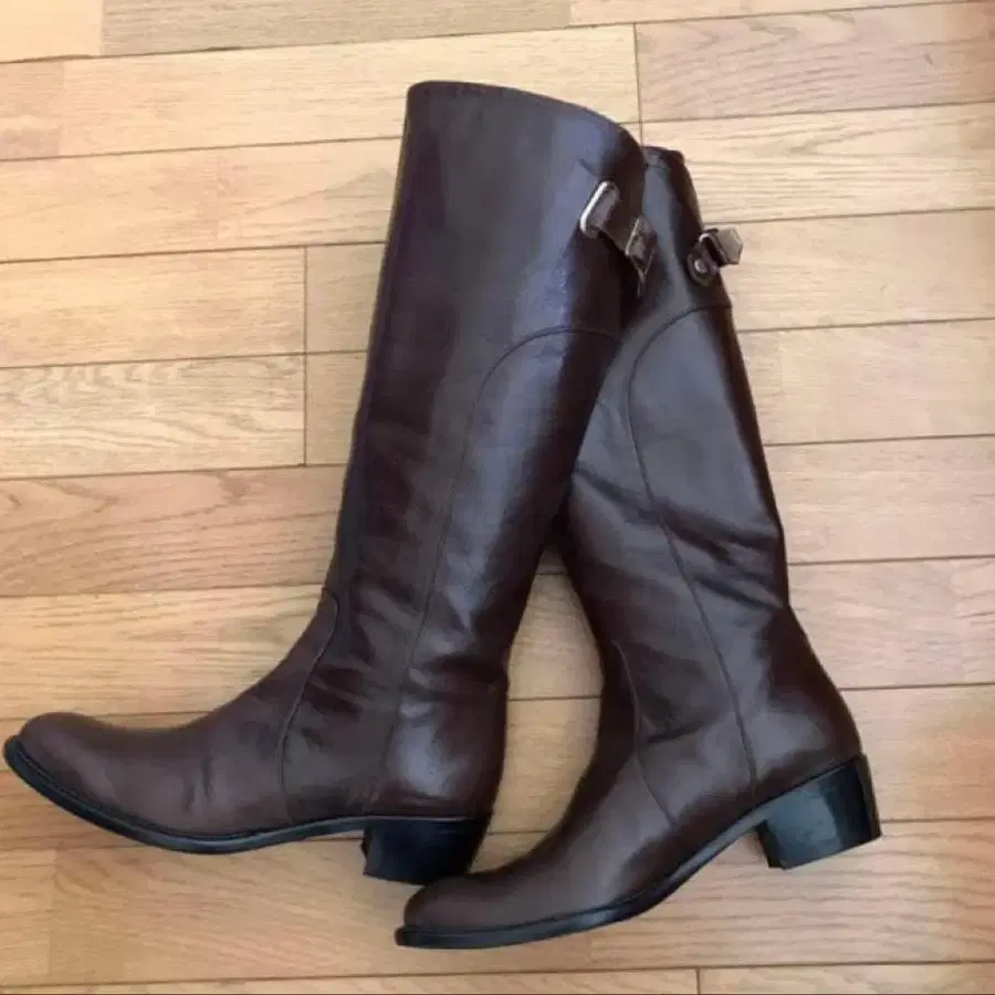 [ 브랜드 ] Clar Pierce [ 아이템 ] 가죽 롱 부츠 ( 승마 부츠 스타일 ) [ 색상 ] 브라운 [ 소재 ] 천연 가죽 ( 가죽 ) [ 사이즈 ] 24cm ( 대략 ) [ 힐 높이 ] 약 3cm [ 입구 ( 외경 ) ] 약 38cm [ 종아리 ( 외경 ) ] 약 36.2cm [ 길이 ] 약 42.5cm ( 힐 4.5cm + 38cm ) 고급스러운 브라운 색상의 천연 가죽 롱 부츠입니다. 백의 벨트 디자인이 포인트이며, 심플하면서도 고급스러운 인상입니다. 스커트에도 팬츠에도 잘 어울리며, 가을 겨울 코디에 딱입니다. 착용 횟수 1회. 전체적으로 깨끗한 상태이지만, 뒤꿈치 부분에 약간의 사용감이나 작은 흠집 등이 있을 수 있습니다. 사진을 확인하신 후 구매해 주세요. ※ 박스 있음, 간편 포장으로 발송됩니다. ※ 새상품급이지만 일단 USED이므로 이해하신 분만 부탁드립니다.