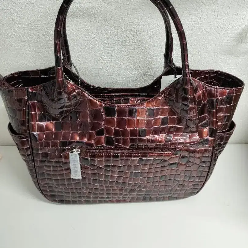 적갈색 크로커다일풍 토트백