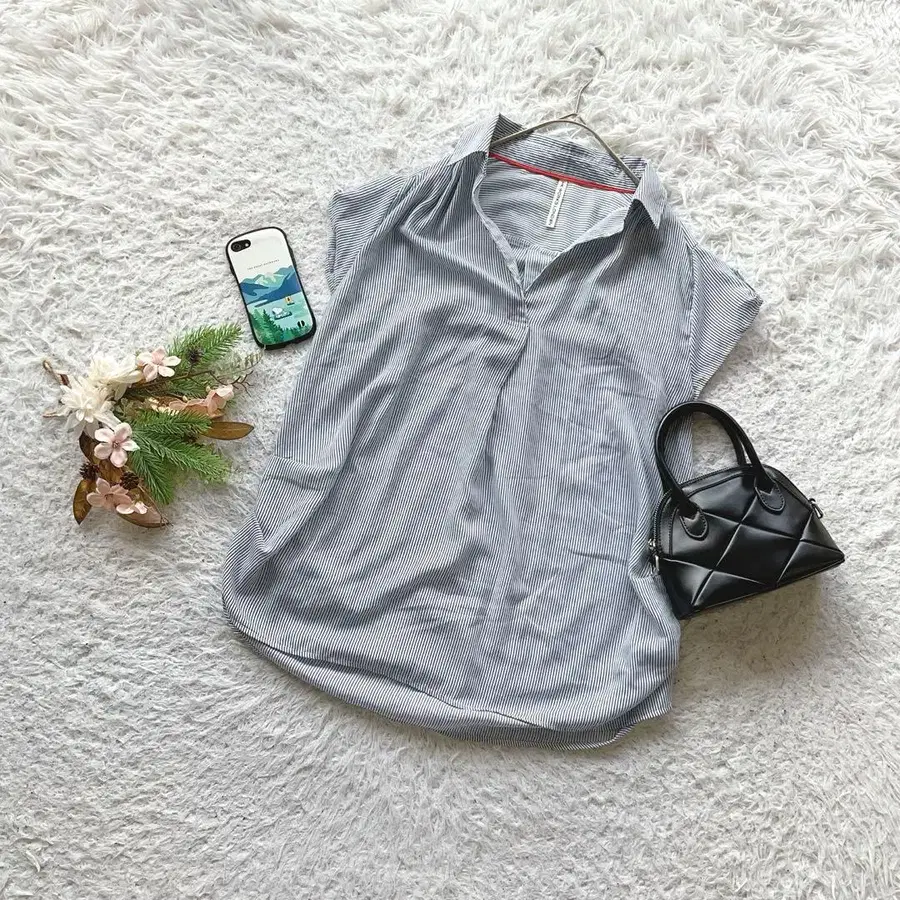 슬리브리스 블라우스 스트라이프 L 출퇴근용 얇은 소재 봄 오피스 캐주얼