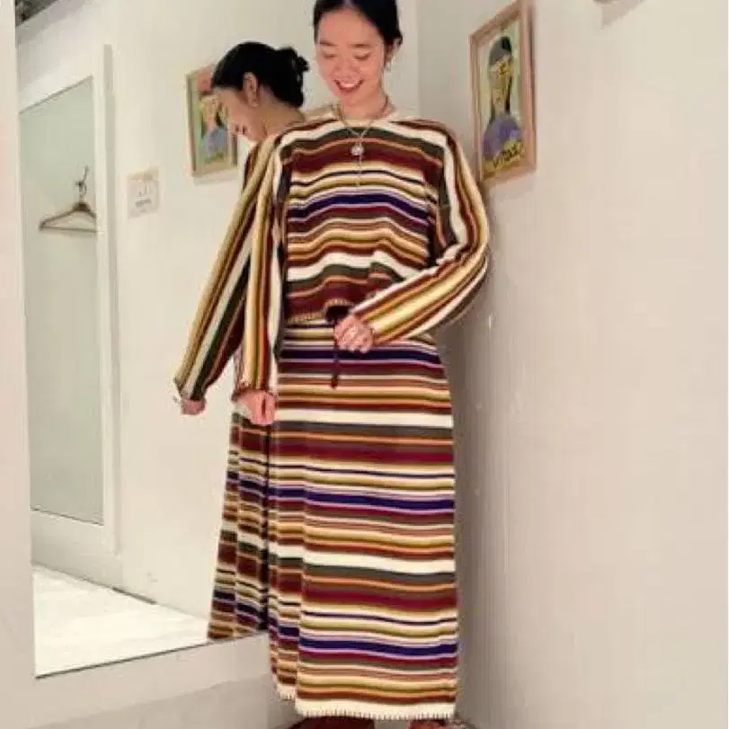주인공급 스커트 팝한 배색이 눈길을 끄는, 멀티 보더 무늬의 스커트가 등장. 끈으로 허리 조절이 가능하며, 릴랙스하게 입으실 수 있는 아이템입니다. 울 혼방 소재를 사용하여 캐주얼하면서도 고급스러운 연출이 가능한 스커트. 일부러 안쪽 면을 사용하여 멀티 보더의 컬러가 돋보이도록 제작했습니다. 담요 스티치를 디자인 포인트로 넣어 적당한 크라프트 느낌도 연출. 같은 원단의 스커트 [ 품번: 13-15-0023-126 ] 와 셋업으로 착용하는 것도 추천합니다. Model : H162 B79 W59 H85 Size : FREE 원단 두께: 보통 비침: 없음 신축성: 있음 광택감: 없음 안감: 없음 [ 스태프 리뷰 ] 스태프: 요시노 사쿠라 신장: 156cm / 평소 사이즈: S / 착용 사이즈: FREE 사이즈감: 예쁜 A라인 니트 스커트. 가슴 너비가 넓어 니트지만 다리 라인을 드러내지 않고 입을 수 있습니다 ◎ 소재감: 까슬거리지 않고 부드러운 착용감. 포인트: 신형입니다! 선명한 컬러와 밑단까지 신경 쓴 디자인에 주목해 주세요! 스태프: 사카사이 스즈카 신장: 164cm / 평소 사이즈: M / 착용 사이즈: FREE 사이즈감: 제 키에는 조금 짧은 듯했지만 팬츠 등으로 레이어드하기 좋은 길이였습니다. 소재감: 비침이 없어 예쁜 라인 그대로 착용할 수 있습니다. 포인트: 주인공이 되는 스커트! 상의와 함께 셋업으로도 연출 가능합니다. 정가 16280-