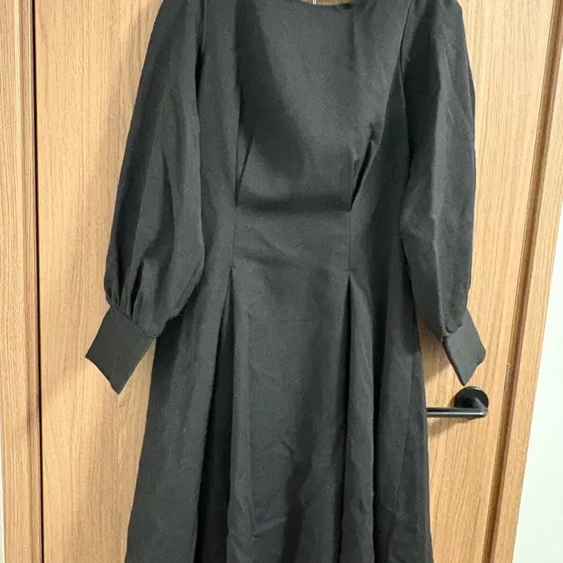 블랙 무릎 기장 플레어 원피스 긴팔