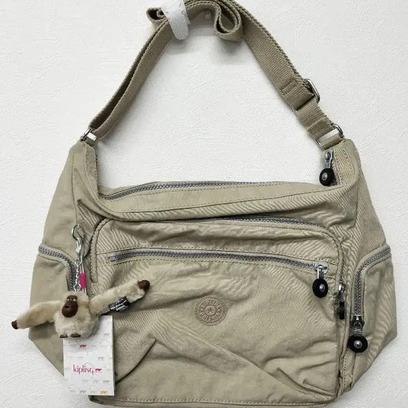 Kipling 베이지 숄더백 원숭이 참 포함