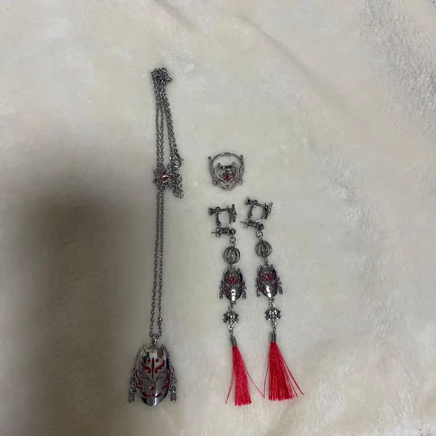REZEN 고면 목걸이 귀걸이 반지 진홍 3세트