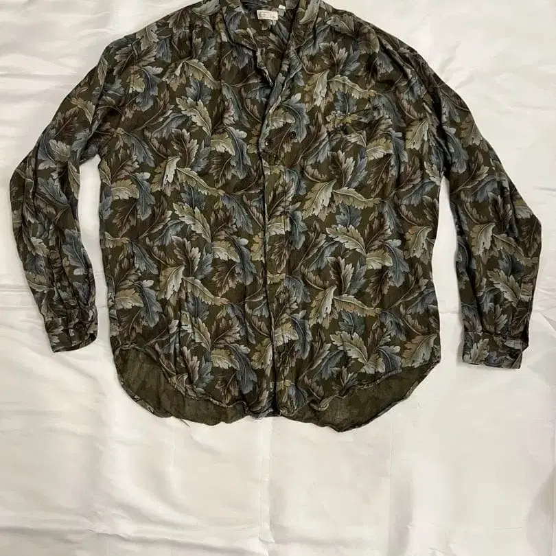 나뭇잎 패턴 긴팔 셔츠 올리브 그린