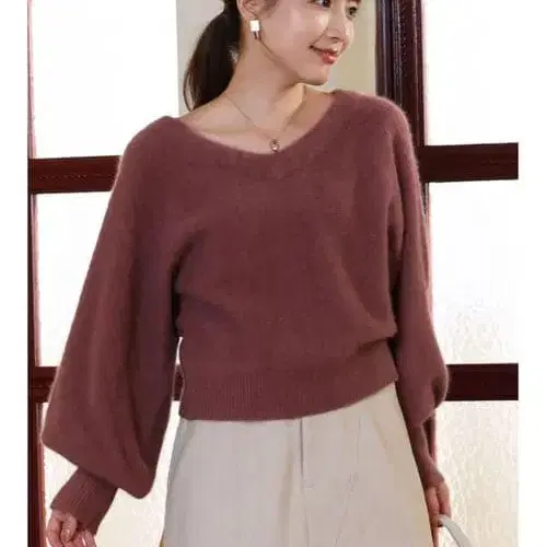 새상품급 모브 V넥 벌룬 슬리브 니트 F 사이즈