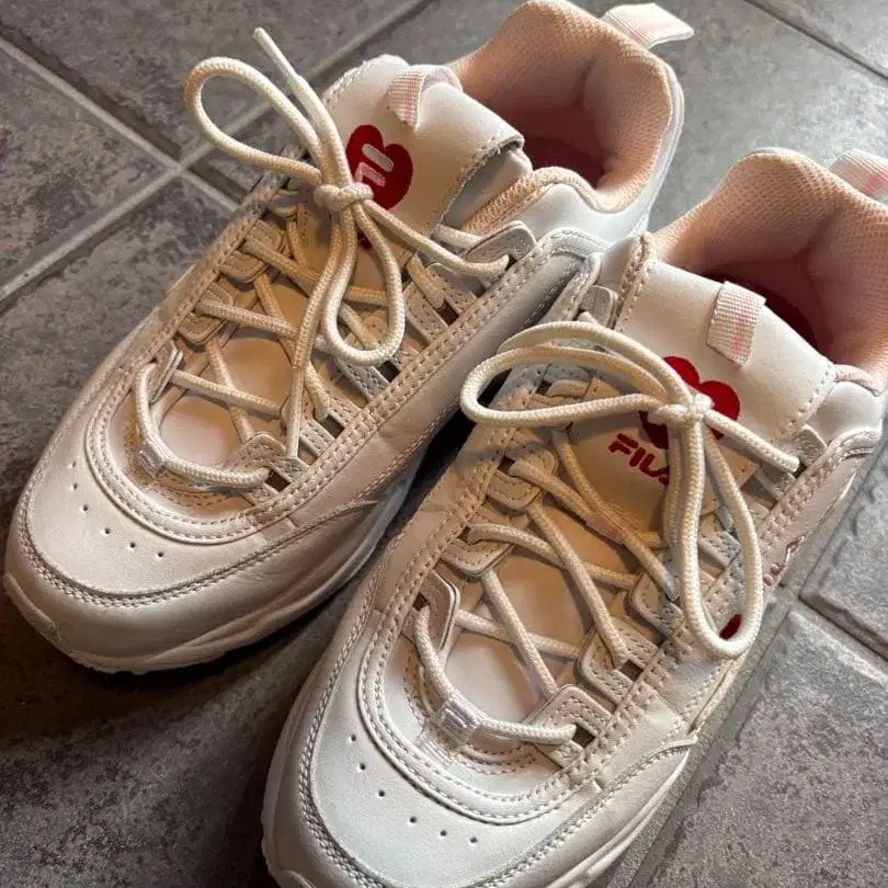 FILA 화이트 스니커즈 하트 디자인