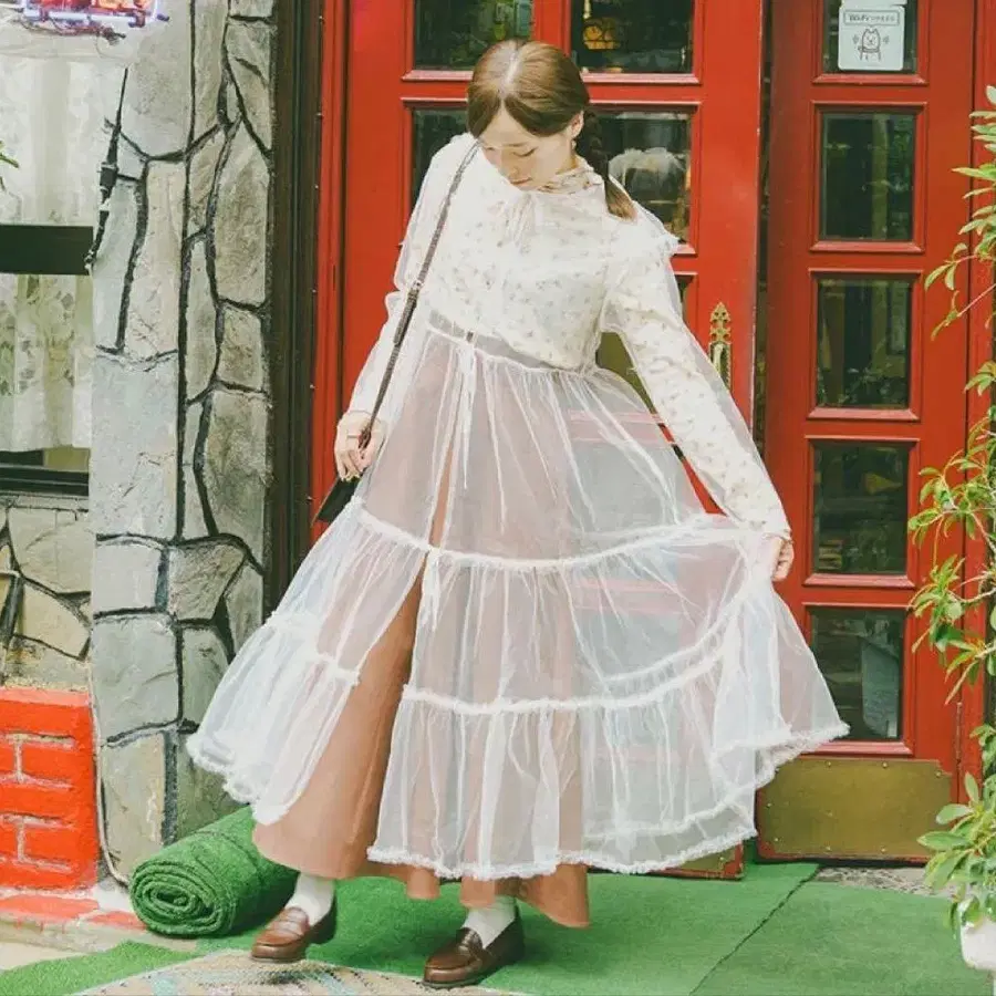 [ kutir ] [ 쿠티르와 레트로 ] 빅 옷깃 튤 티어드 원피스