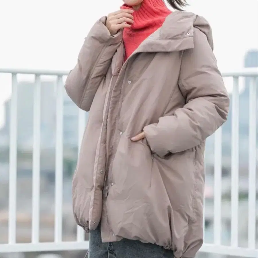단단해 보이기 쉬운 무릎 기장의 다운을 깔끔하게 보이면서도, 엘레강트하지 않고 캐주얼에도 페미닌에도 맞출 수 있는 트라페즈 실루엣(사다리꼴)으로 만들었습니다.