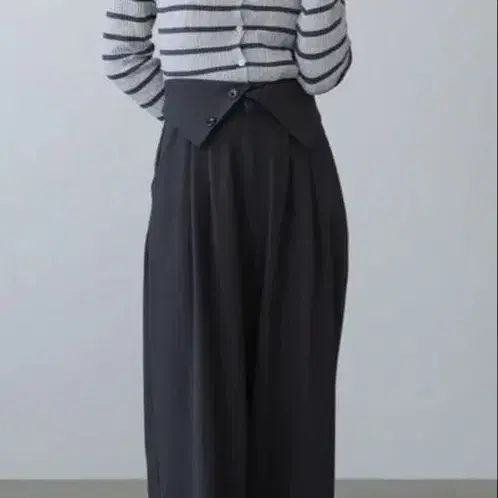 Bou Jeloud bab 허리 플랩 단추 와이드 턱 팬츠 그레이 M