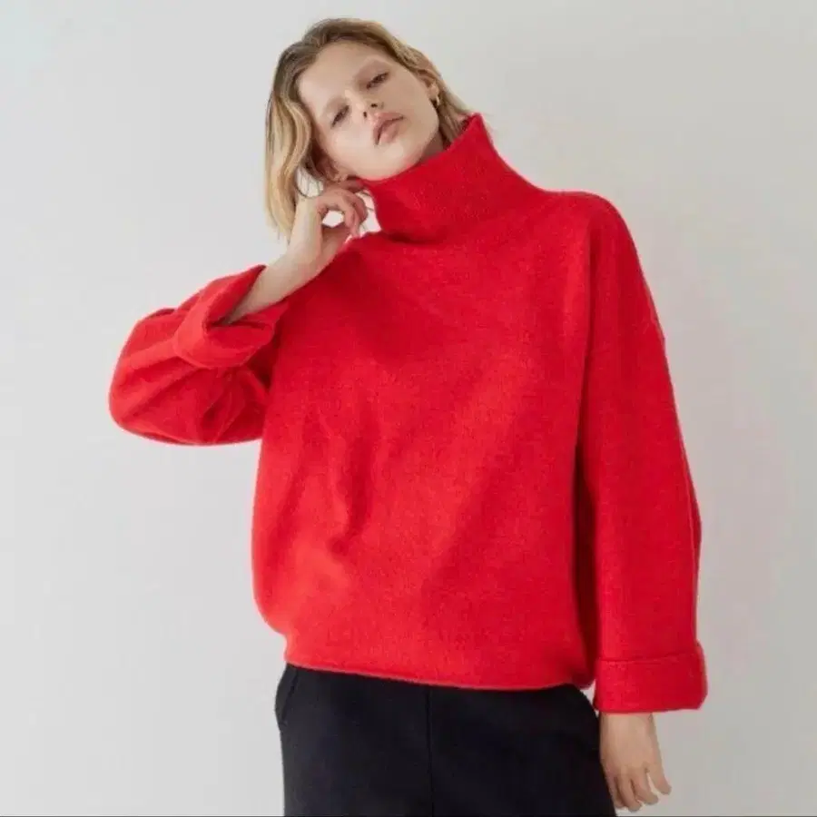 [ 시루무린 ] 울 mix 하이넥 loose 니트 애플