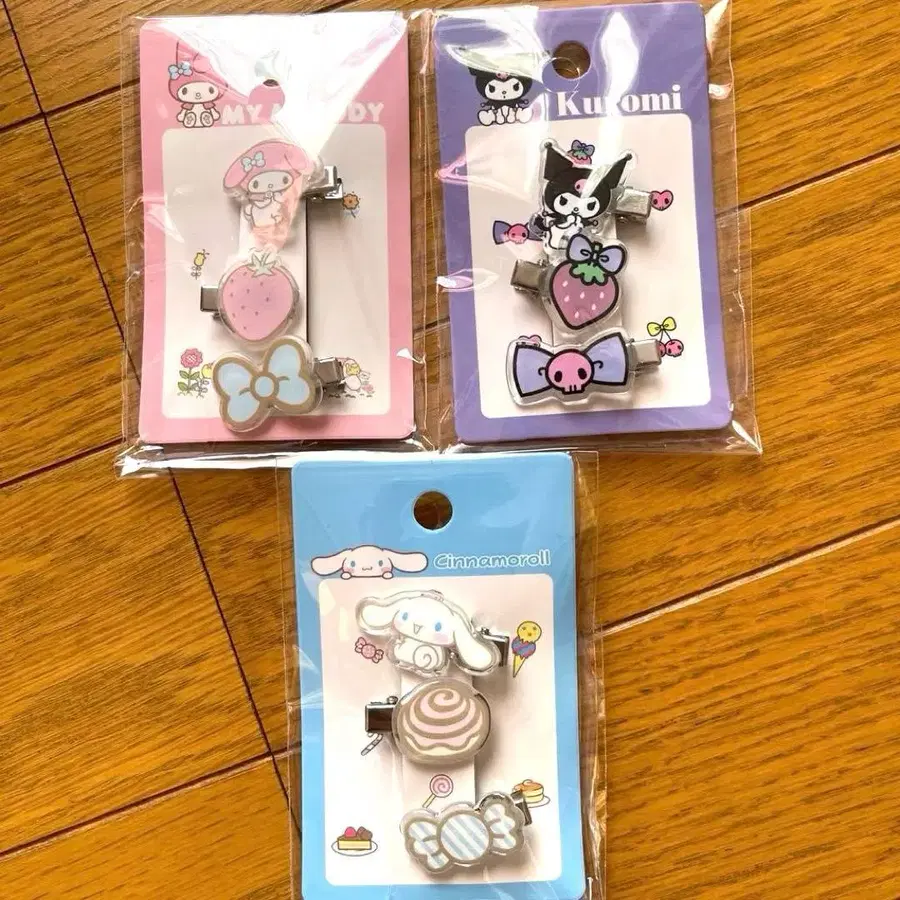 새상품 산리오 마이멜로디 쿠로미 시나모롤 헤어 클립 3개 세트
