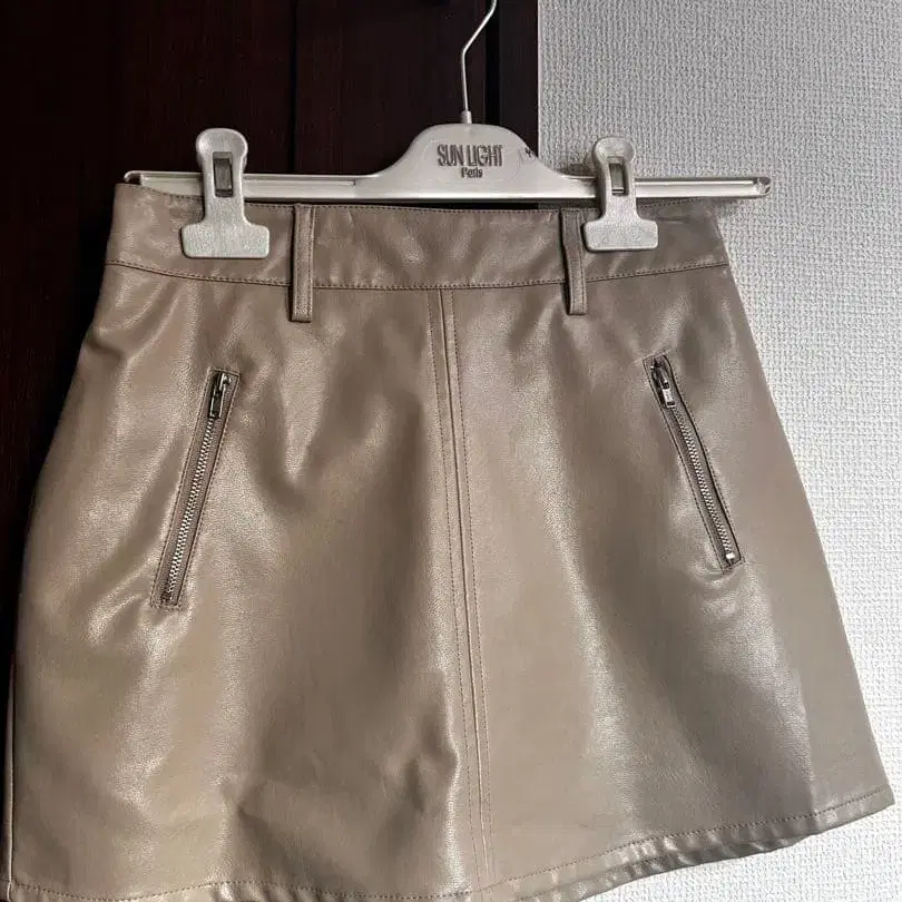 GYDA 가죽 미니 스커트 베이지 지퍼 포켓 부착