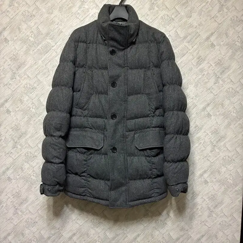DESIGN WORKS 그레이 다운 자켓 울 100% 포켓 부착