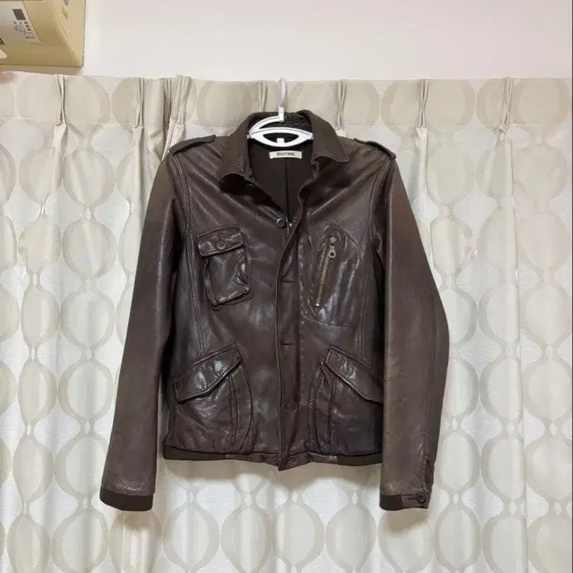 RHYME 다크 브라운 가죽 라이더 자켓 양가죽